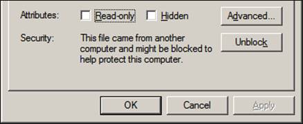 Ø Save to the desktop, right click on the file and select Properties>> Unblock>> Apply>> OK.