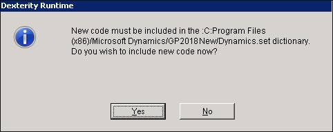 · After copying the file, launch Microsoft Dynamics GP. You see a dialog box like the following: