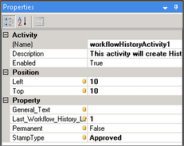 2. The Properties of WorkflowHistoryStampActivity will appear as shown below.
