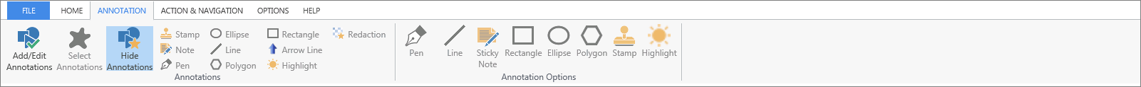 The "Annotations" group only appears when the selected document is a PDF or an Image file i.e. BMP, JPG, TIFF, etc.