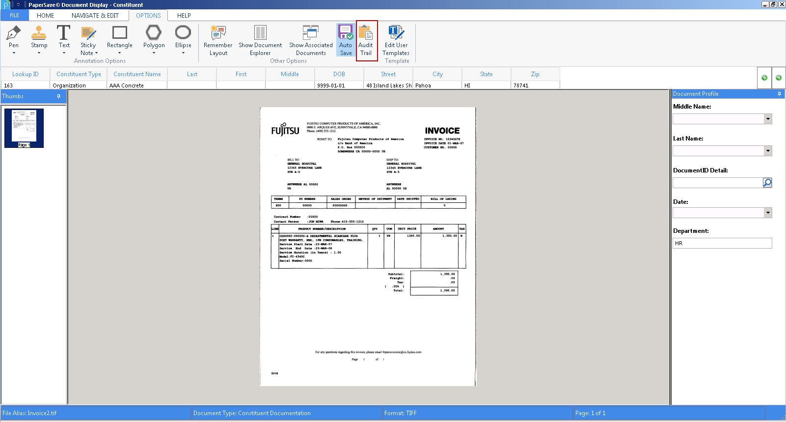 PaperSave gives you the ability to view Audit detail for the selected Workflow Item. You will be able to view Audit Trail button under Options toolbar. You need to follow below mentioned steps to view audit details for the selected Workflow Item.