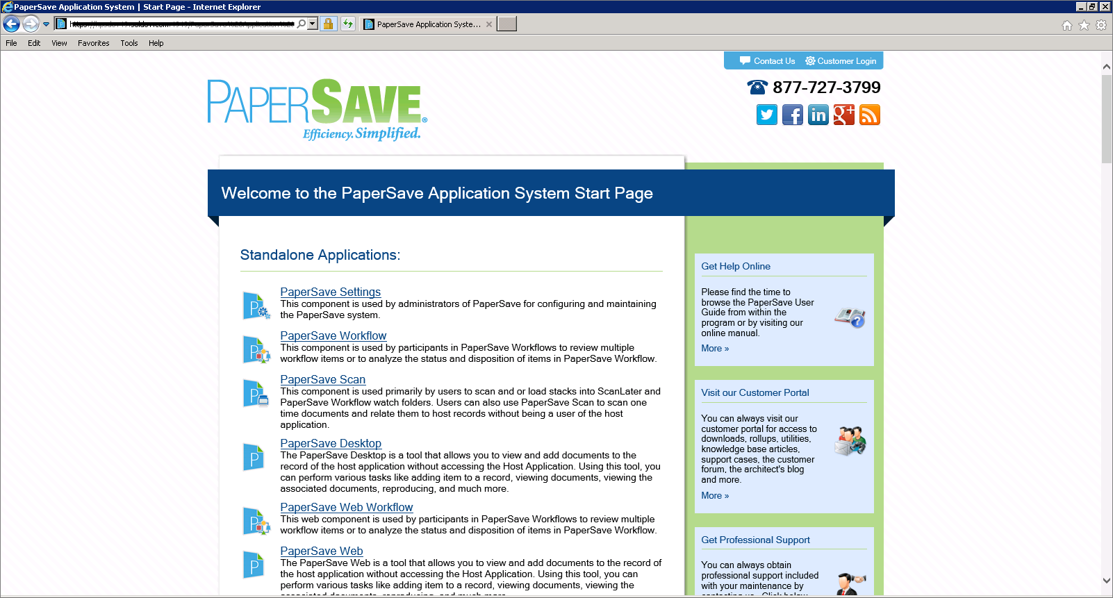 The first and foremost step is to run the PaperSave Application Server URL on your machine by entering the URL in the address bar of Internet Explorer window and click on Go icon. As you run the URL, PaperSave Application System Start Page will open as displayed below. PaperSave gives you the facility to access below mentioned three Standalone Applications by using Cross Domain Support: