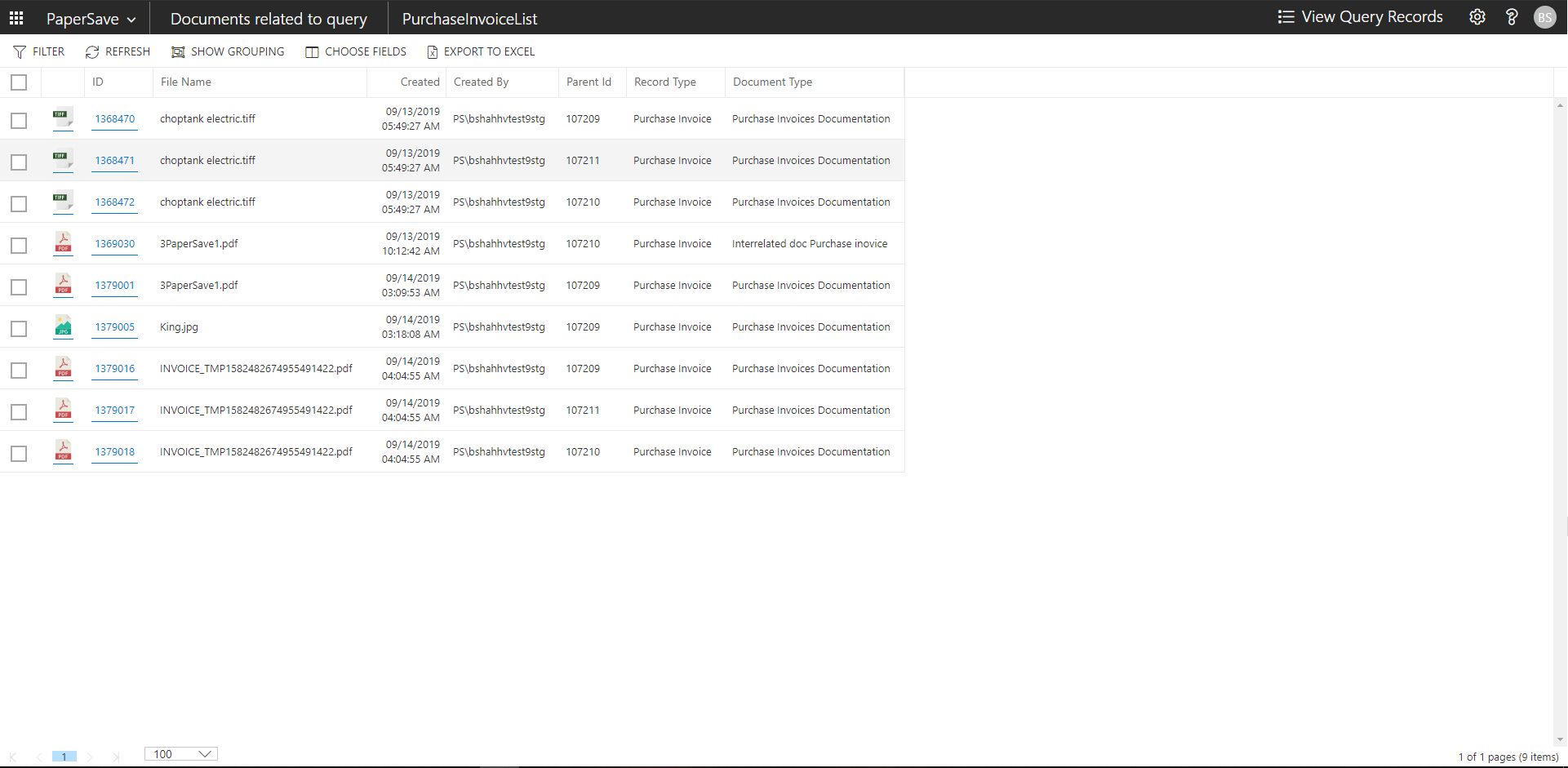 show documents from purchase invoice list