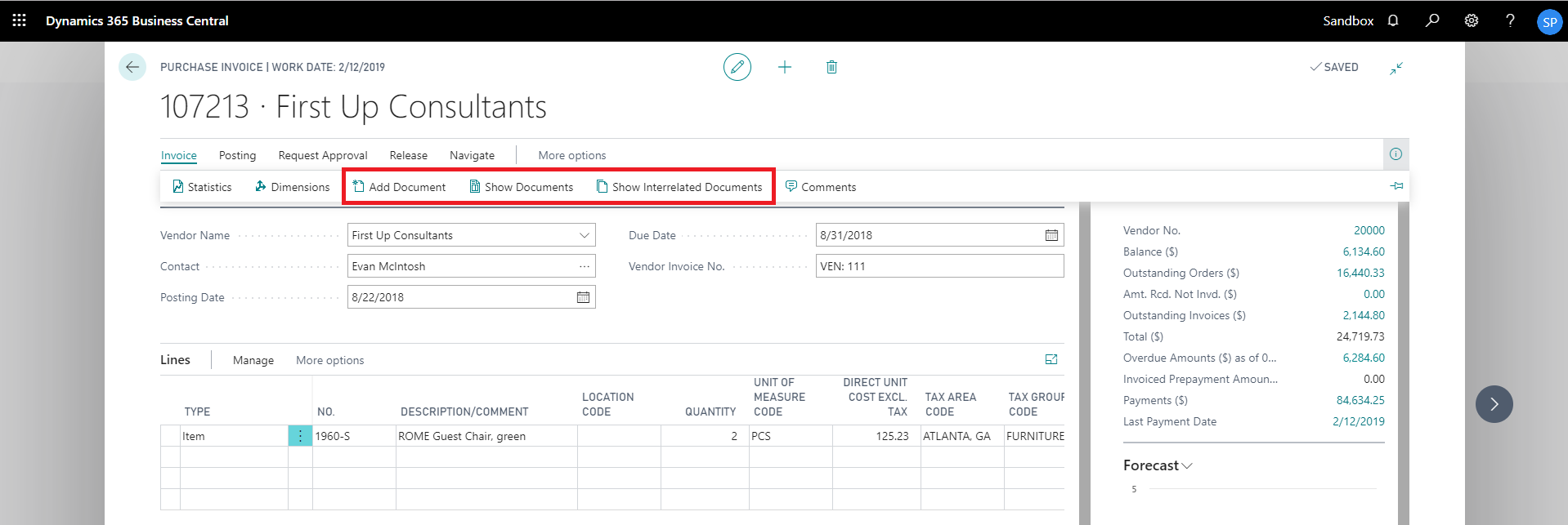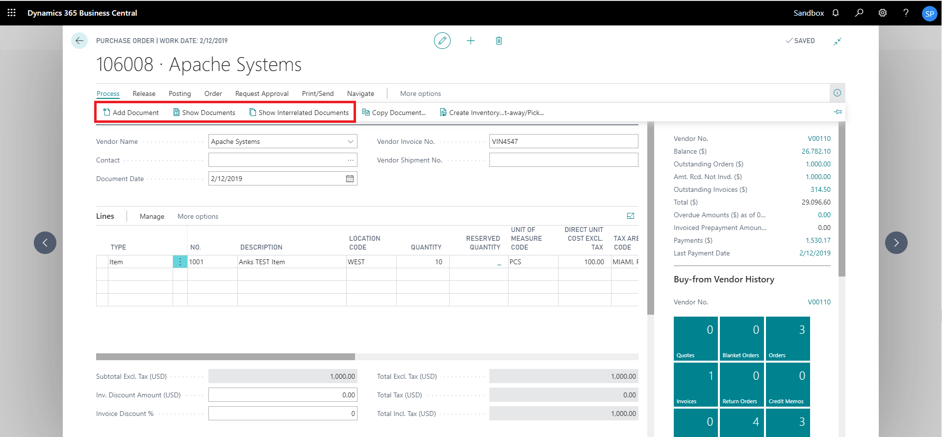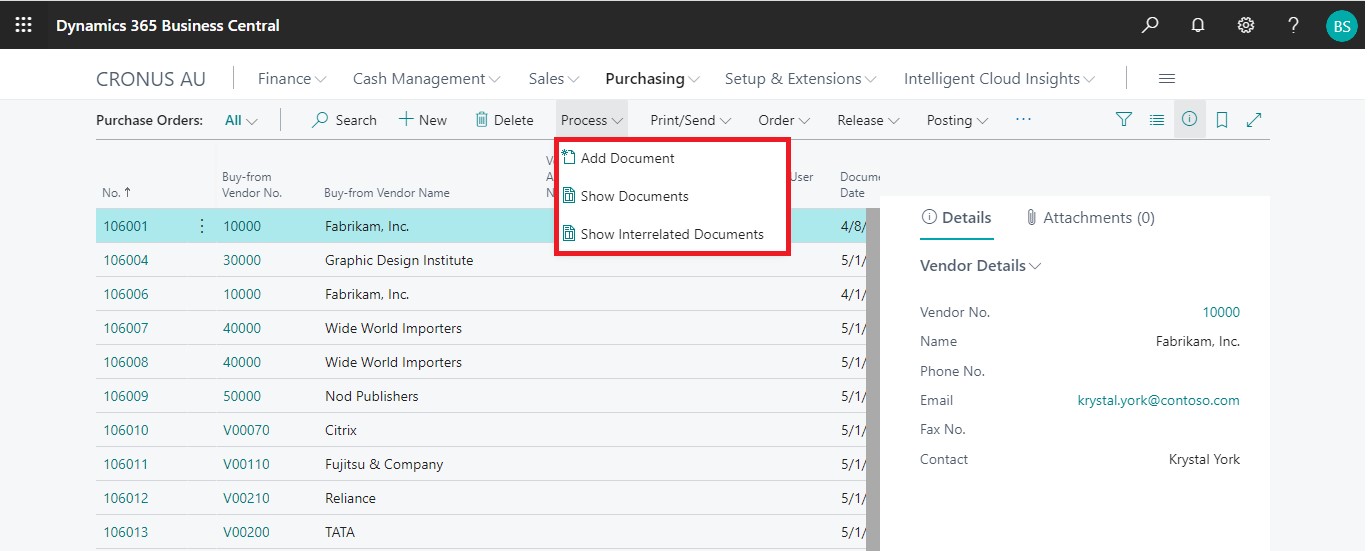 show interrelated documents from vendor card