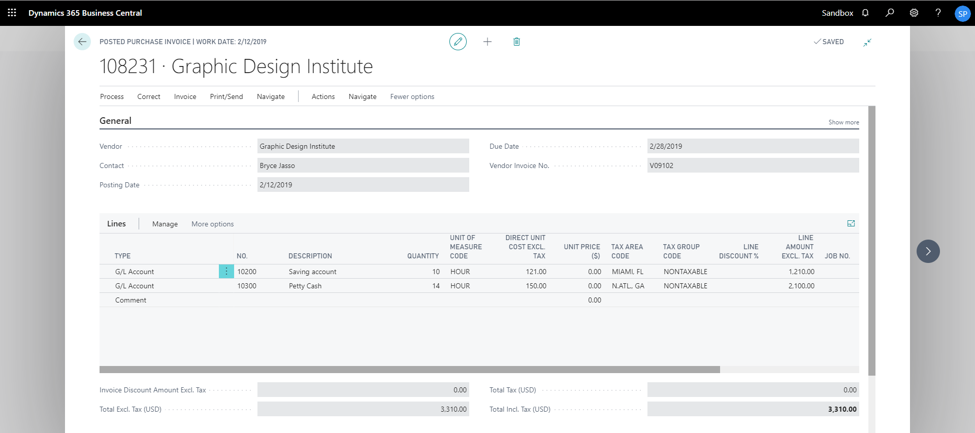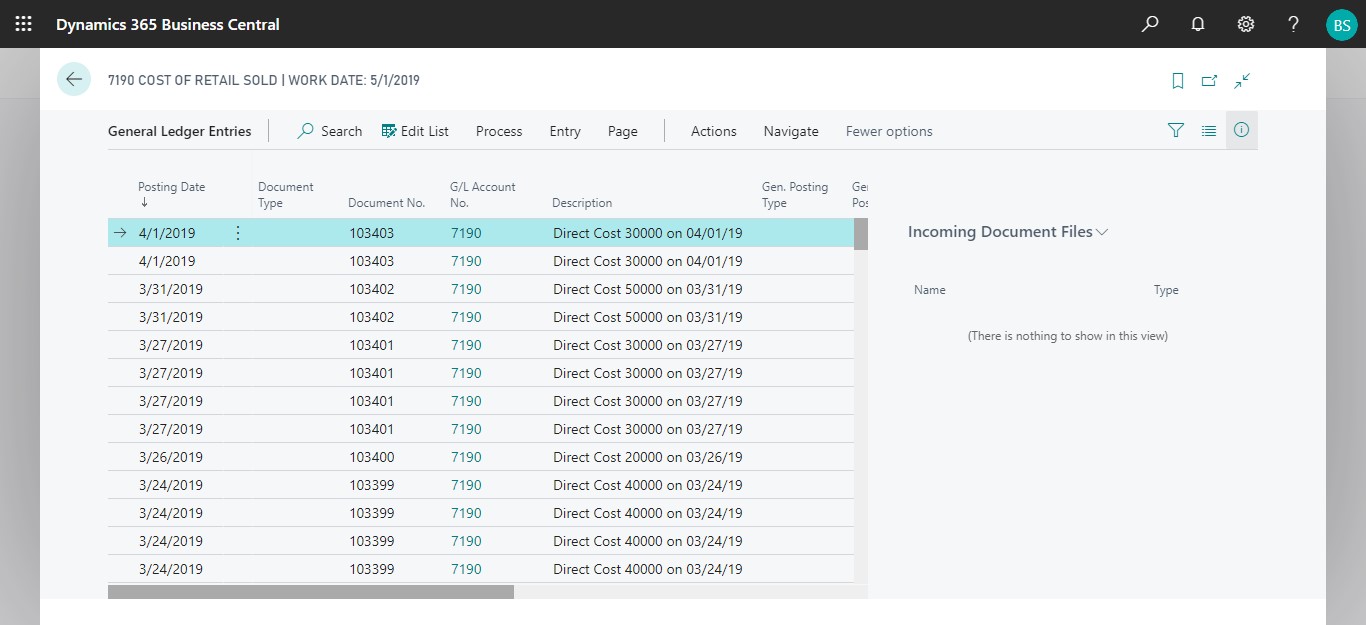 Clicking on the General Ledger Entries opens the General Ledger Entries list: