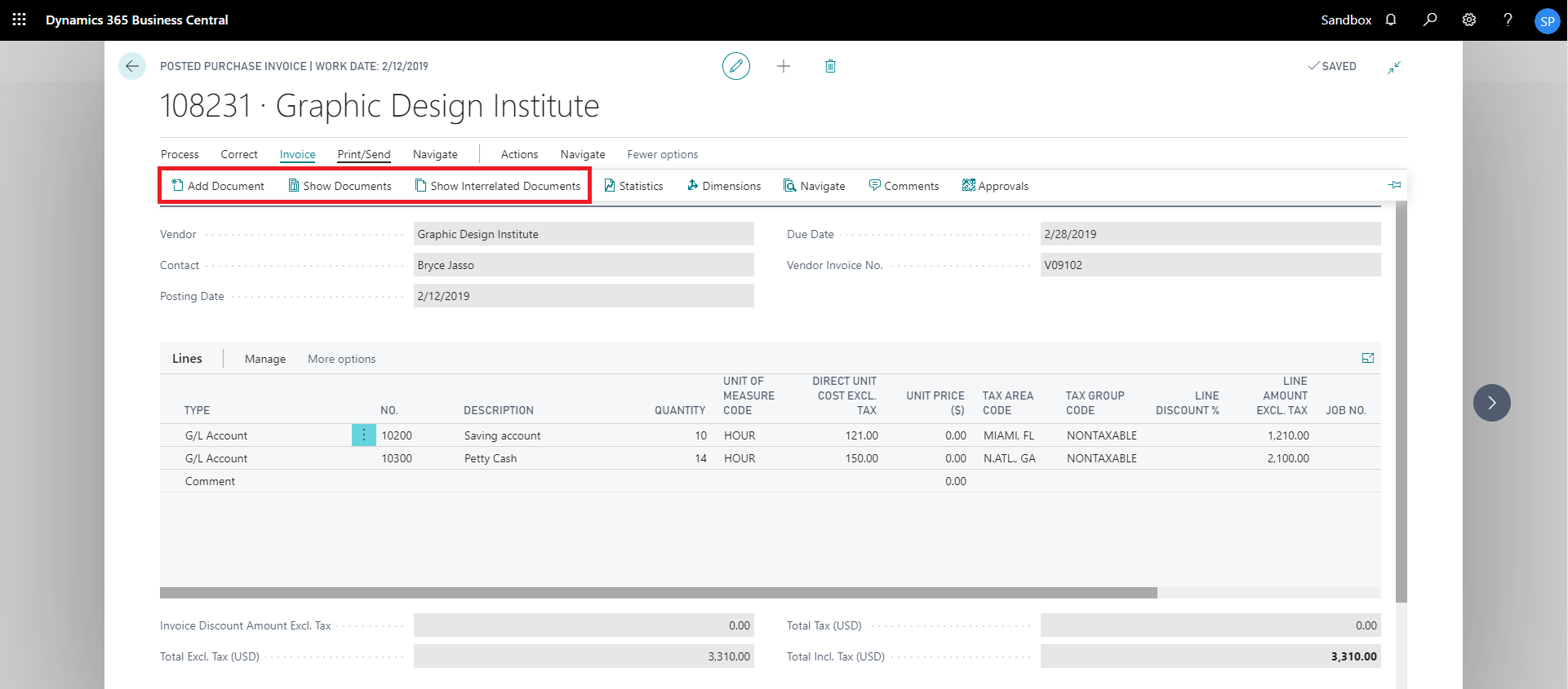 show interrelated documents from posted purchase invoice card
