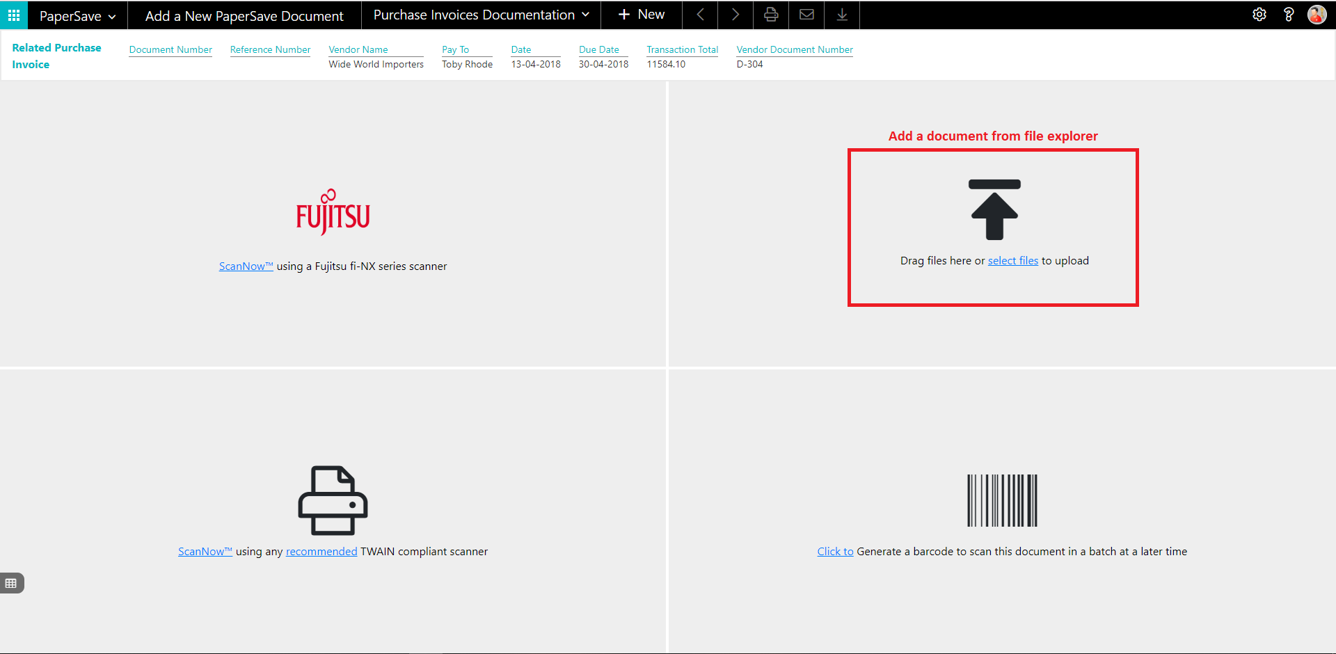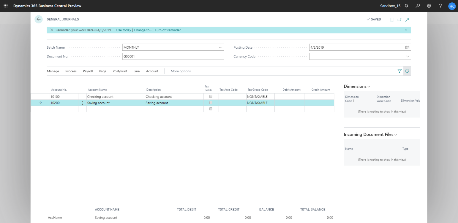 Follow the below steps to test the PaperSave functionality “Add Document” from General Journal batch:
