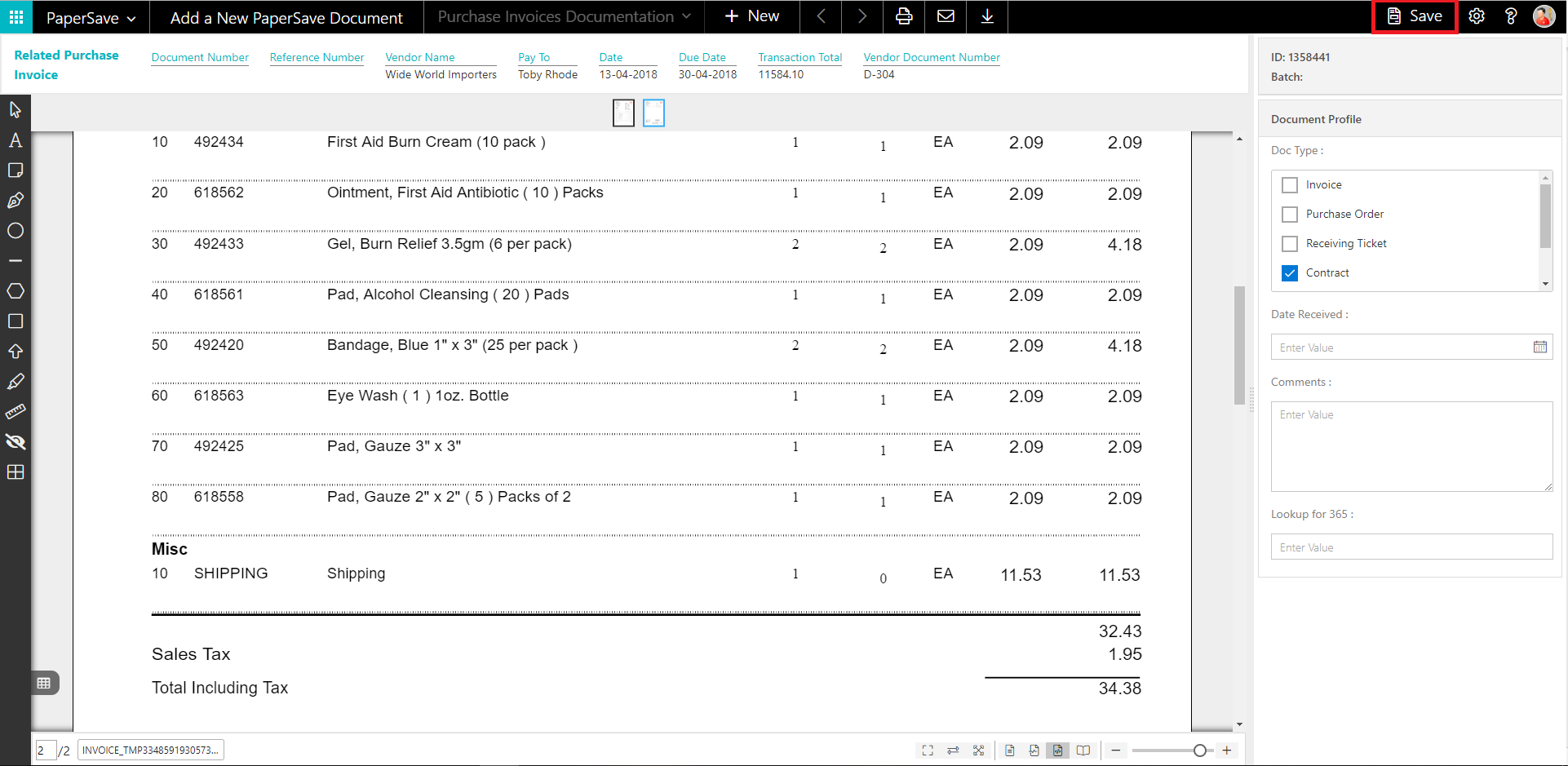 PaperSave Purchase Invoice |