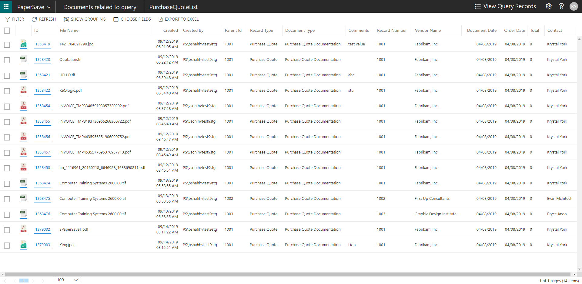It returns the documents which are related to the Purchase Quote. It is used by PaperSave web application to get information for Interrelated documents such as document numbers of Purchase Order, Vendor, Purchase Invoice, and Posted Purchase Invoice. |