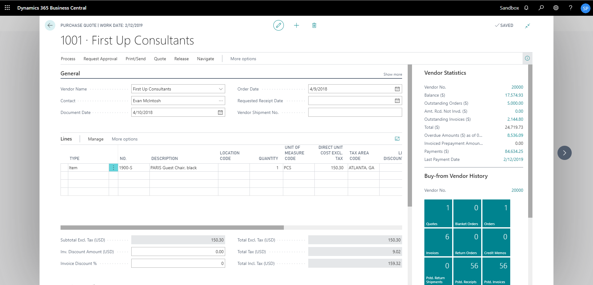 show interrelated documents from purchase quote card