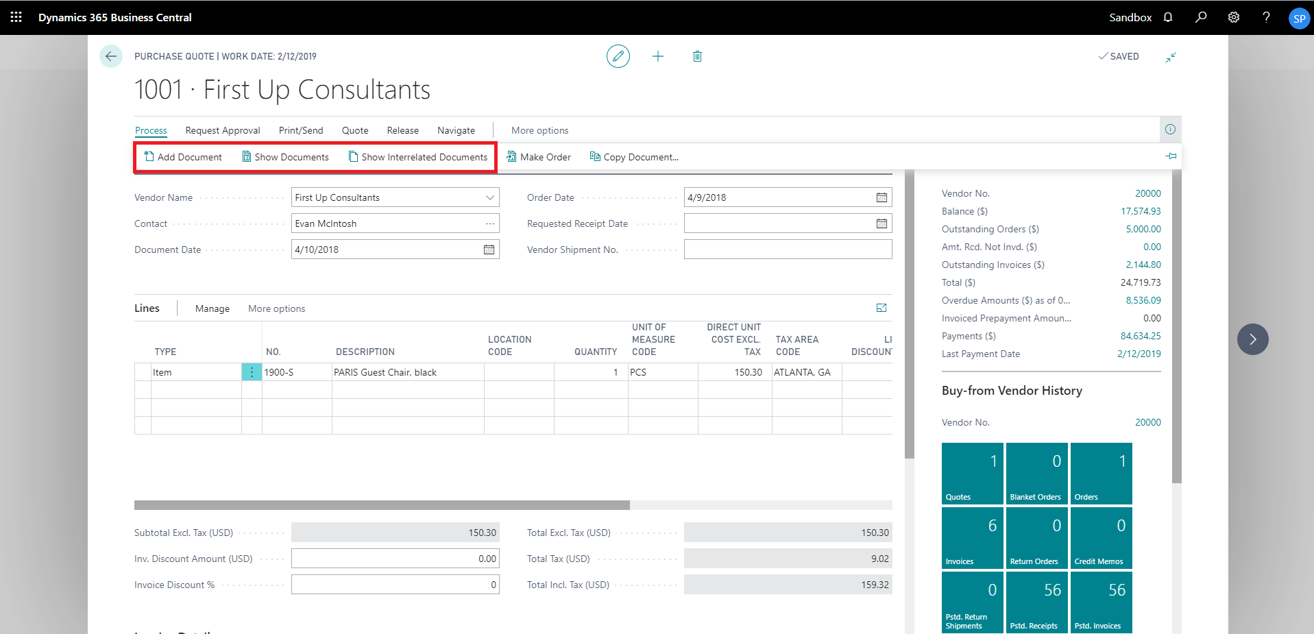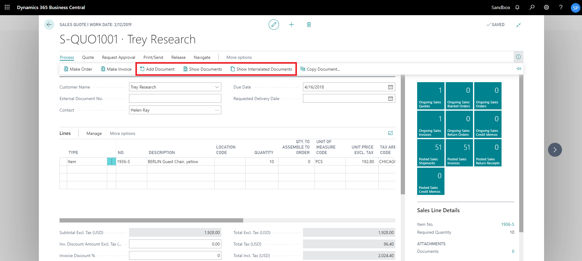 show interrelated documents from sales quote card