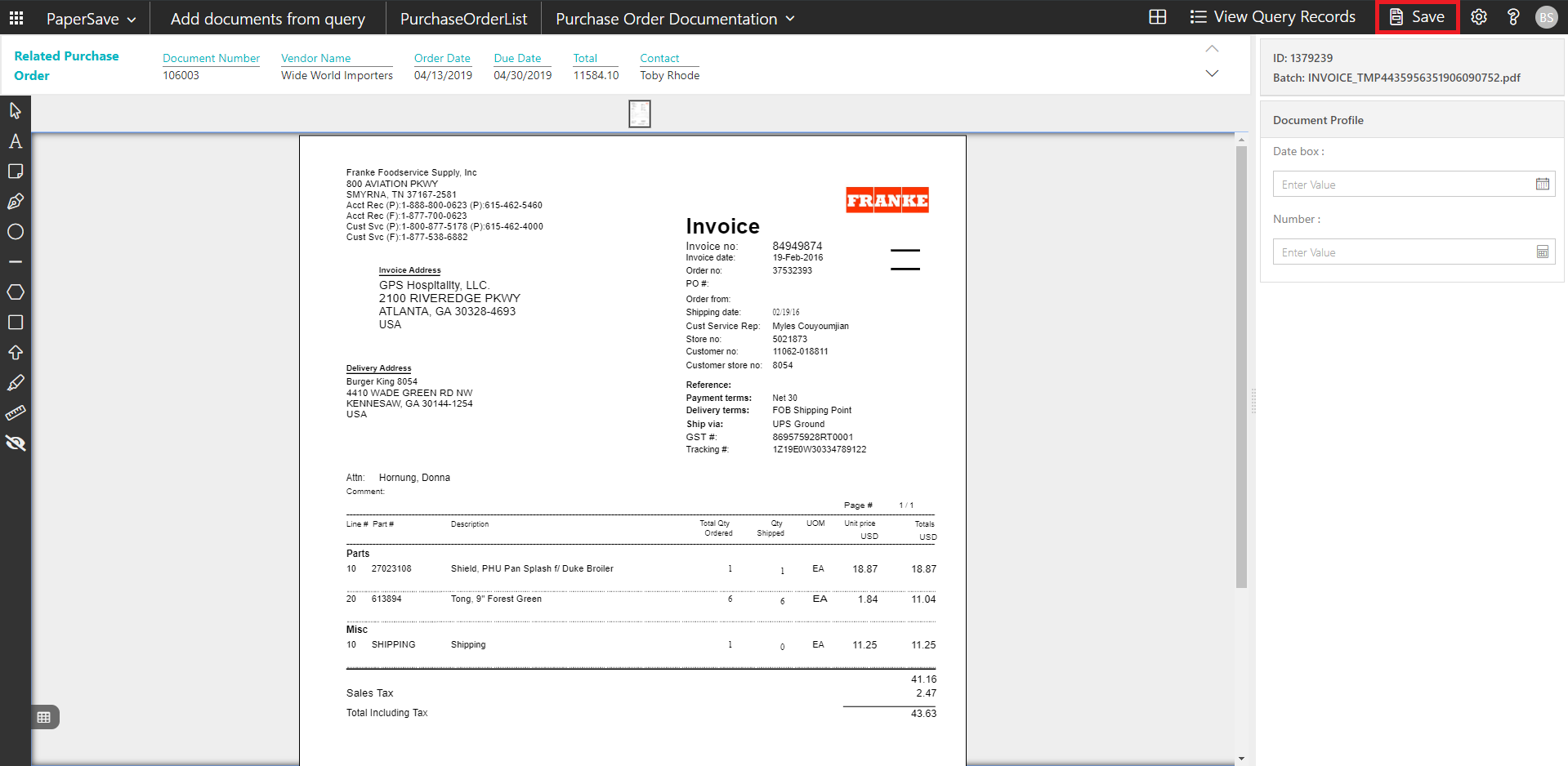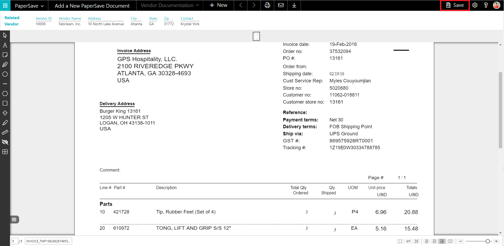 PaperSave PO Header