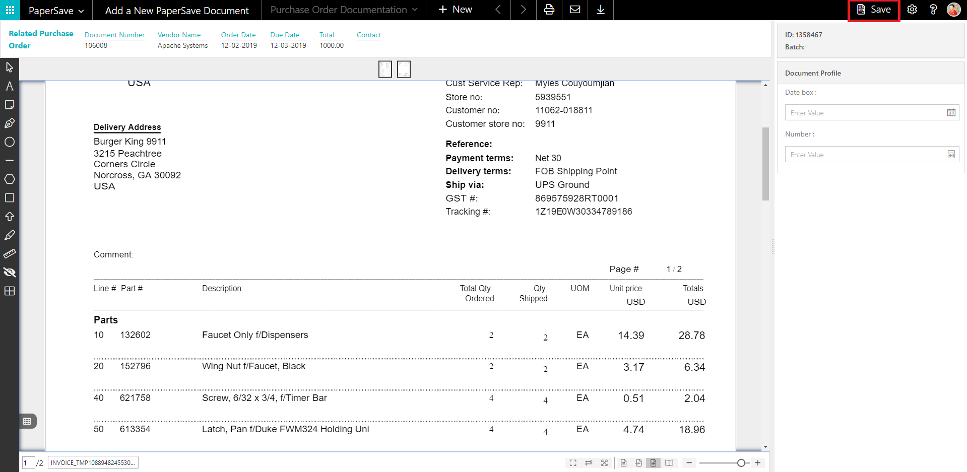 PaperSave Purchase Order