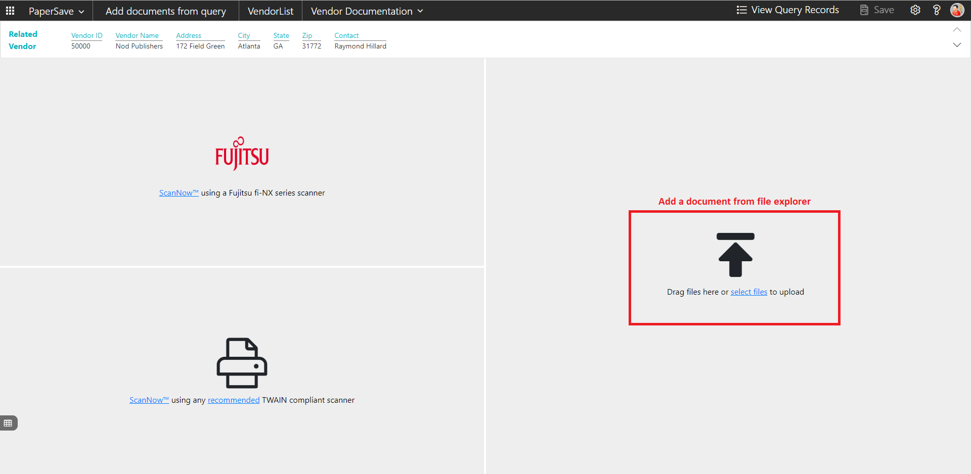 PaperSave facilitates the user to associate the document which is in the side by side viewer to a specific record for a record type. Follow the below steps to associate a document with a desired record for a record type (For e.g. - Vendor)
