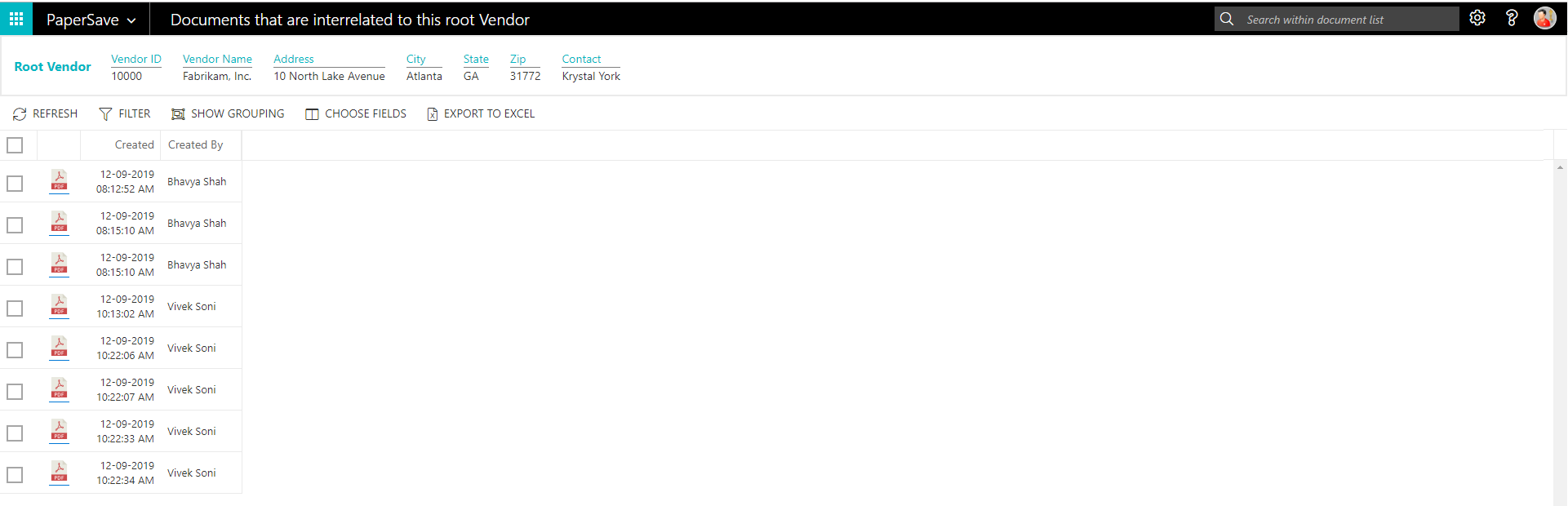 show documents from vendor list