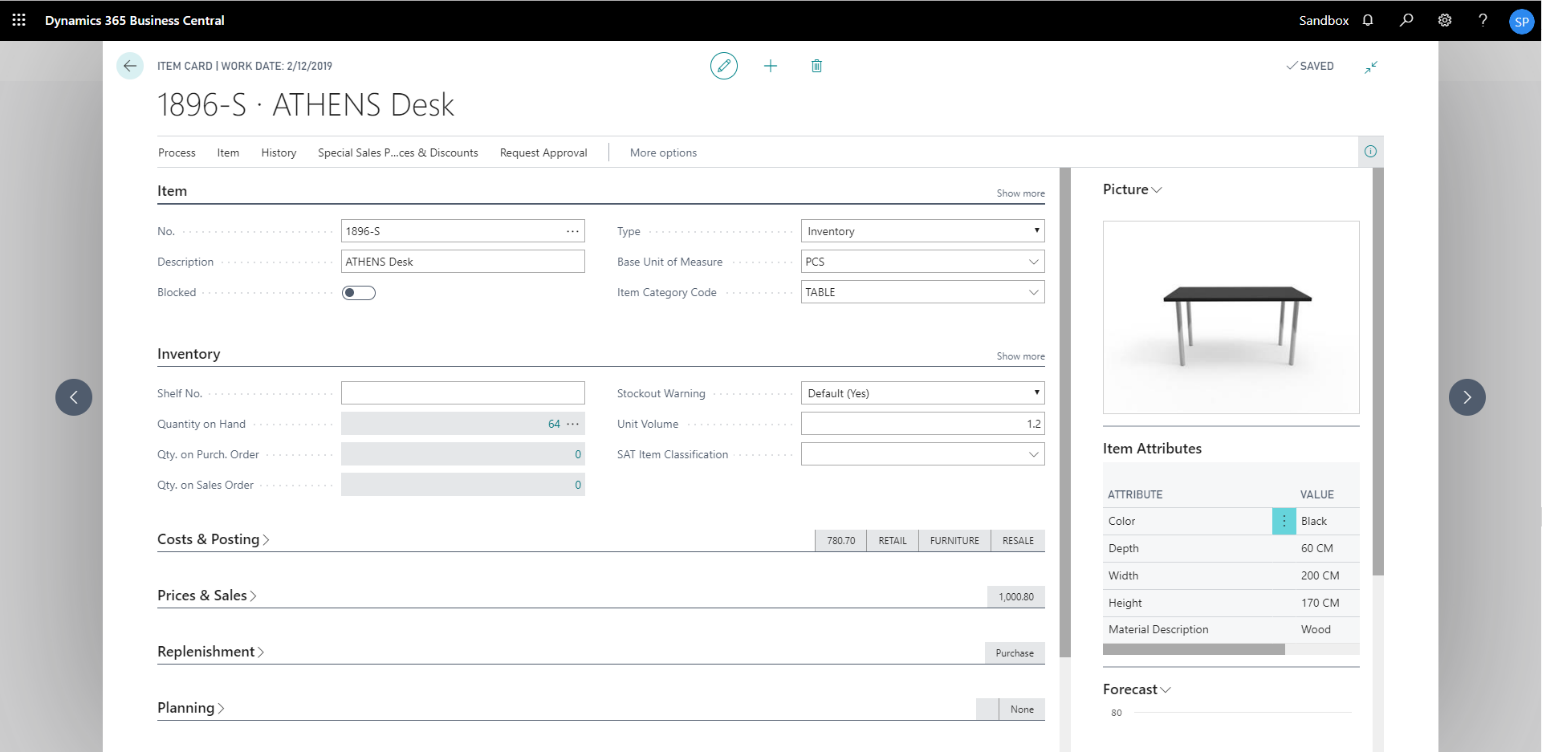 show documents from sales item card