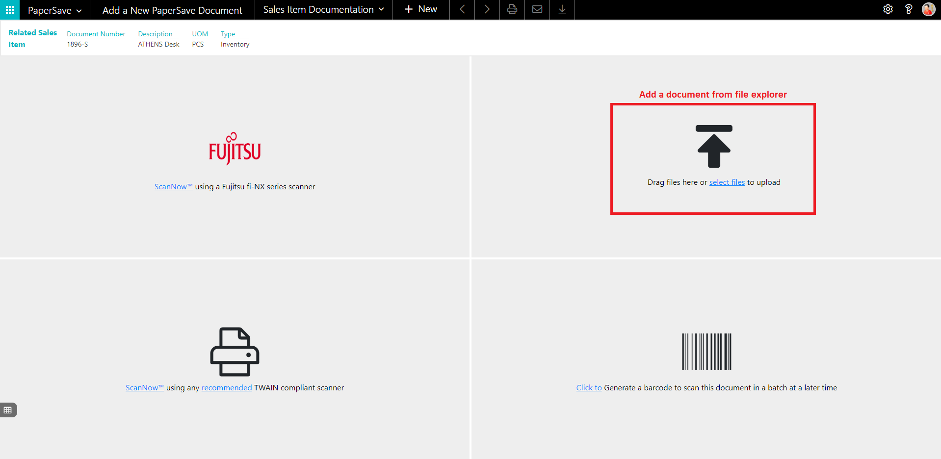 add documents from sales item card