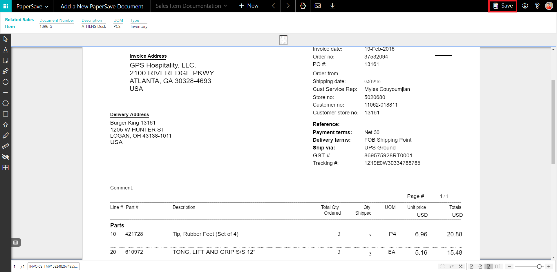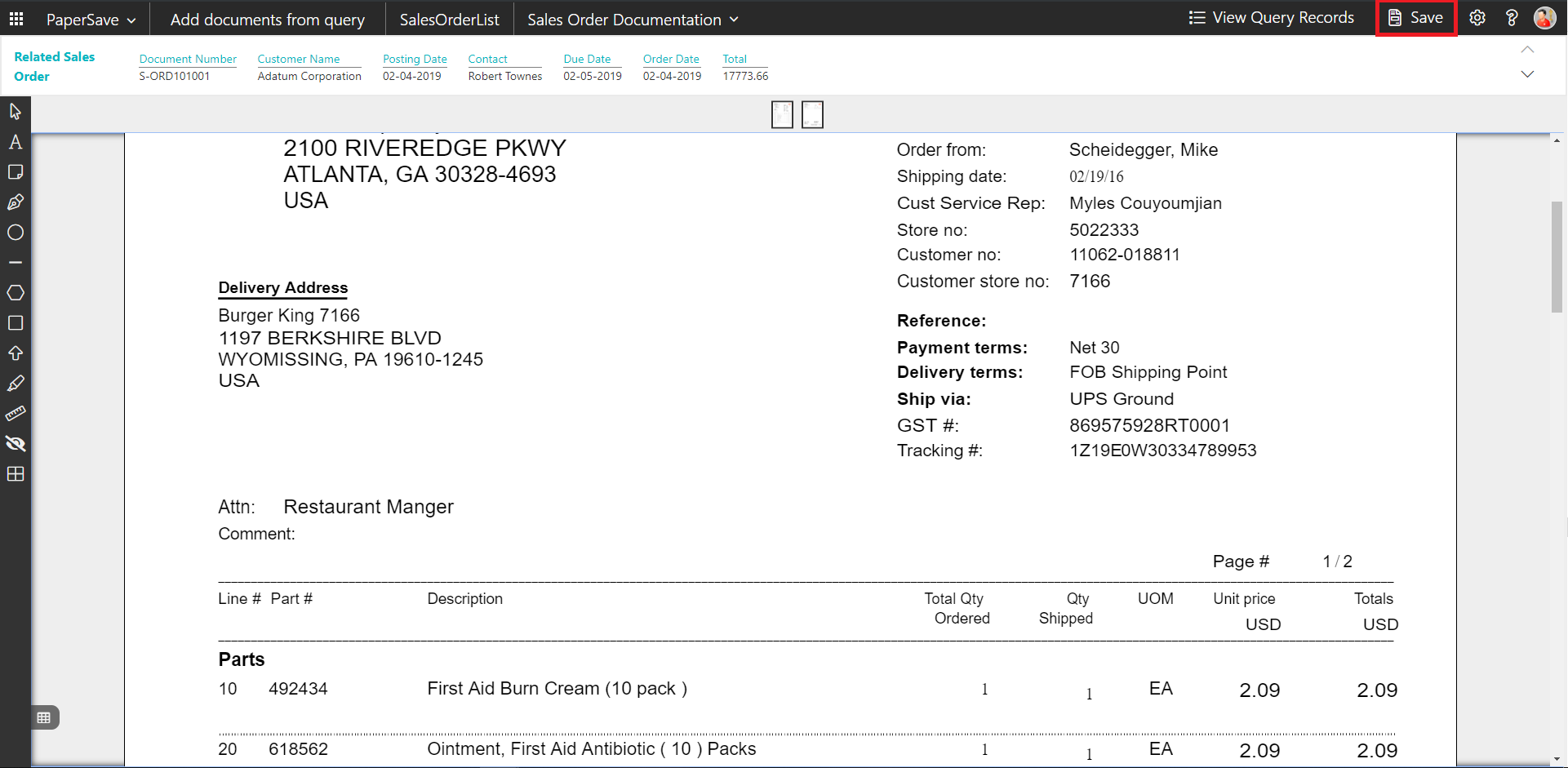 PaperSave Sales Order