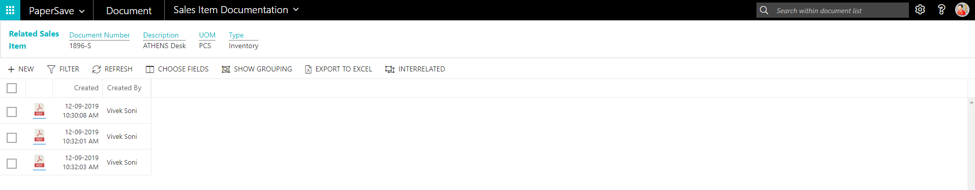 show interrelated documents from sales item list