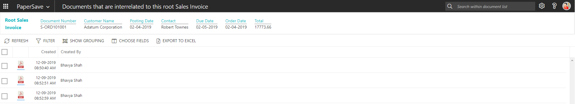 show interrelated documents from sales invoice list