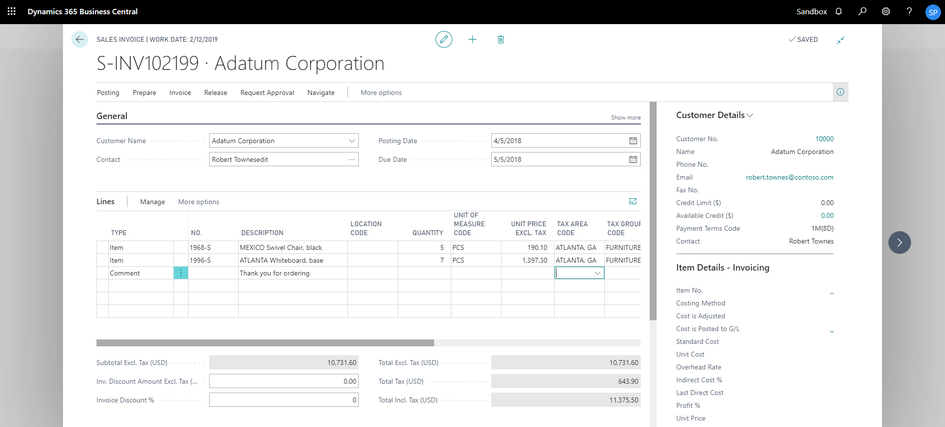 show documents from sales invoice card