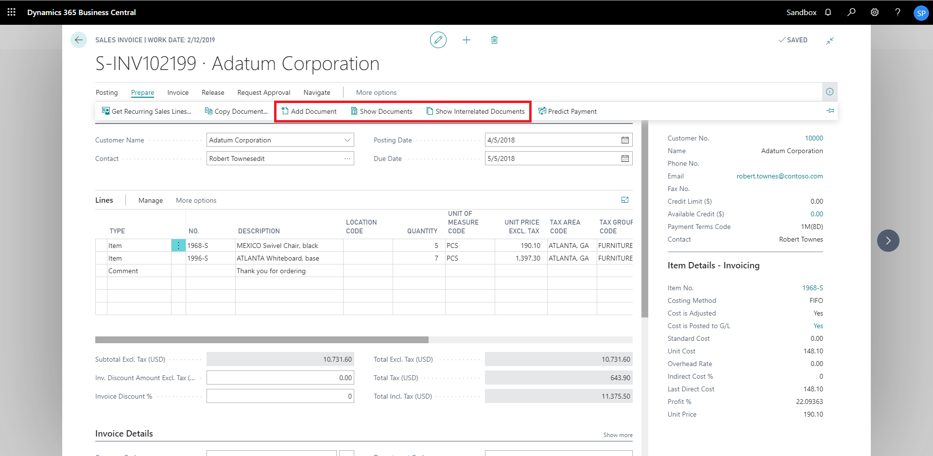 show interrelated documents from sales invoice card