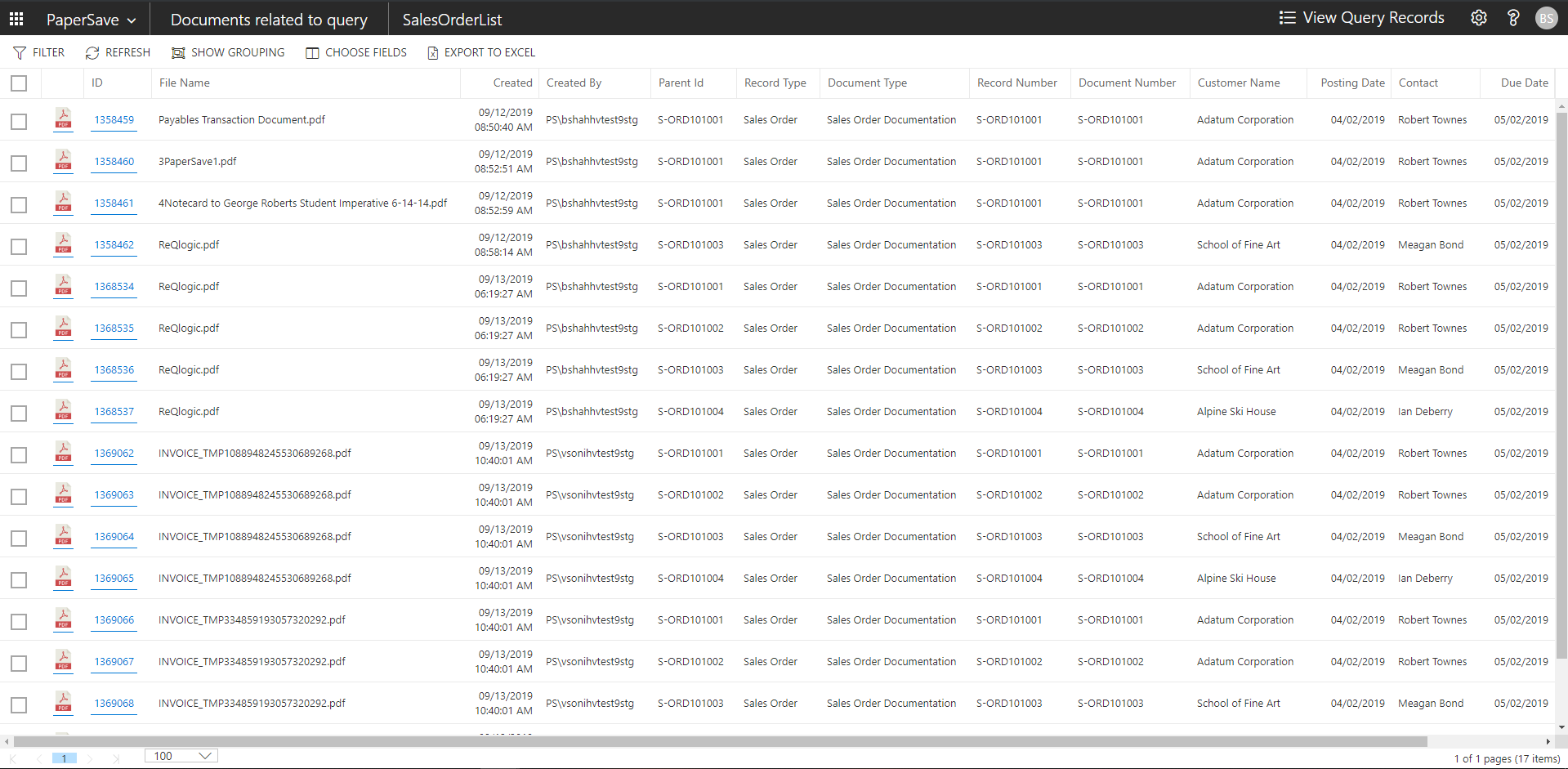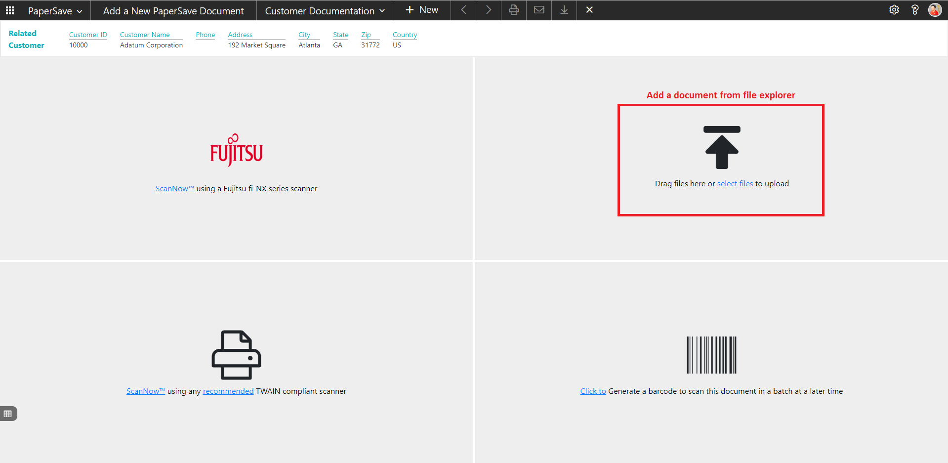 Follow the below steps to test the PaperSave functionality “Show Documents” from Customer card: