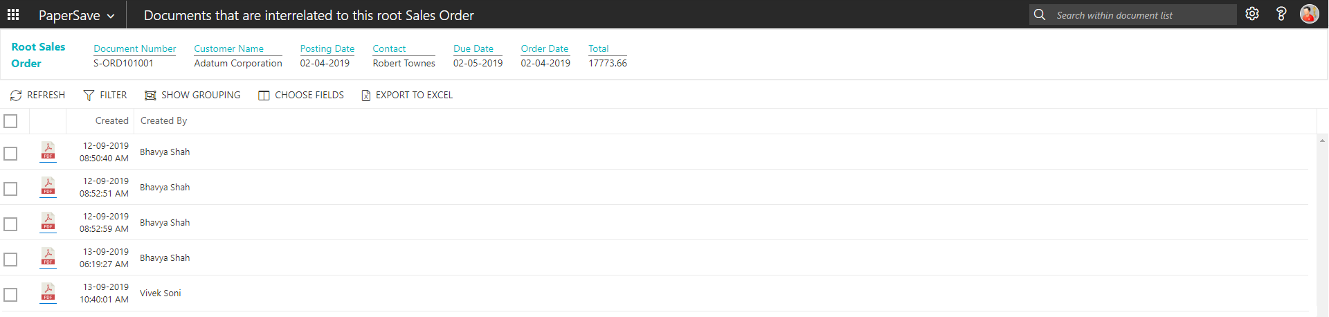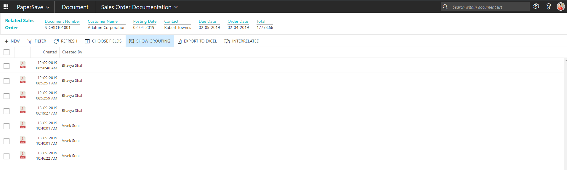 show interrelated documents in sales order list
