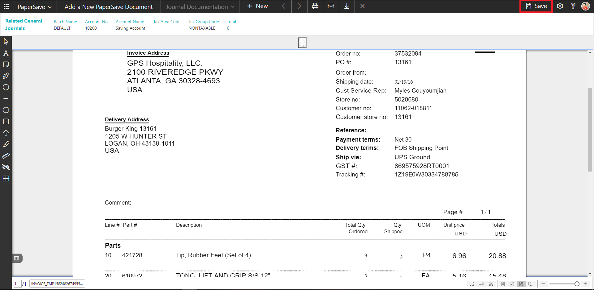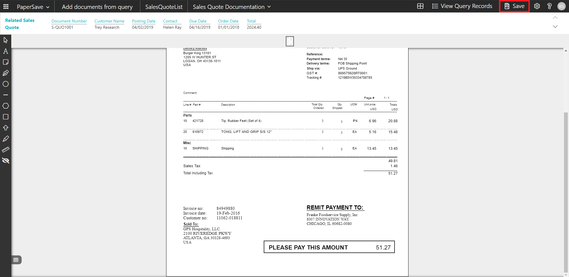 PaperSave Sales Invoice