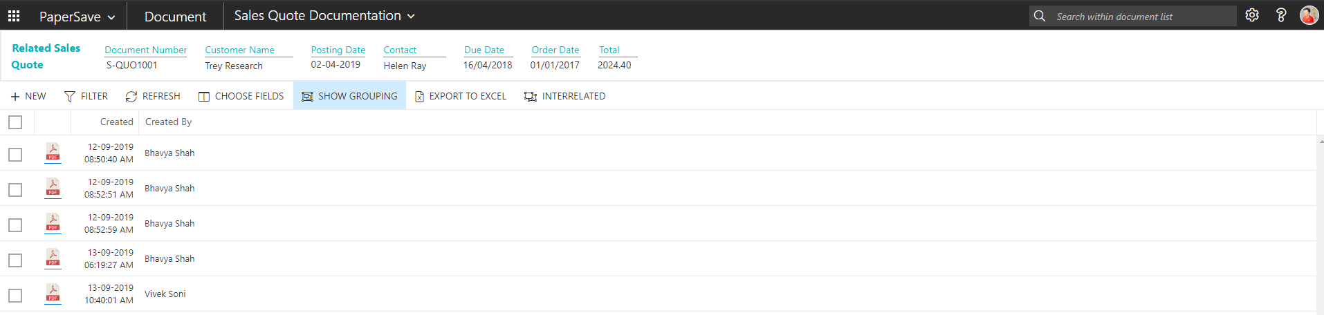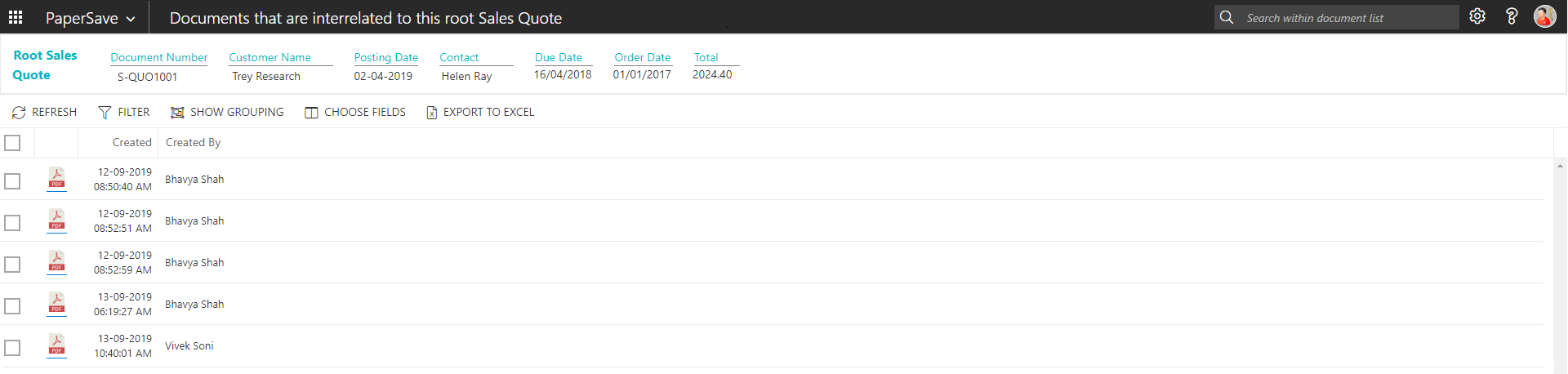 show interrelated documents from sales quote list