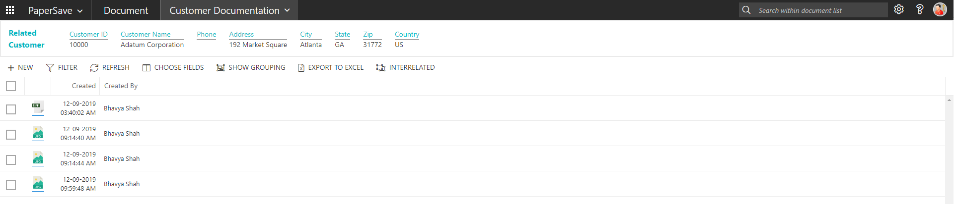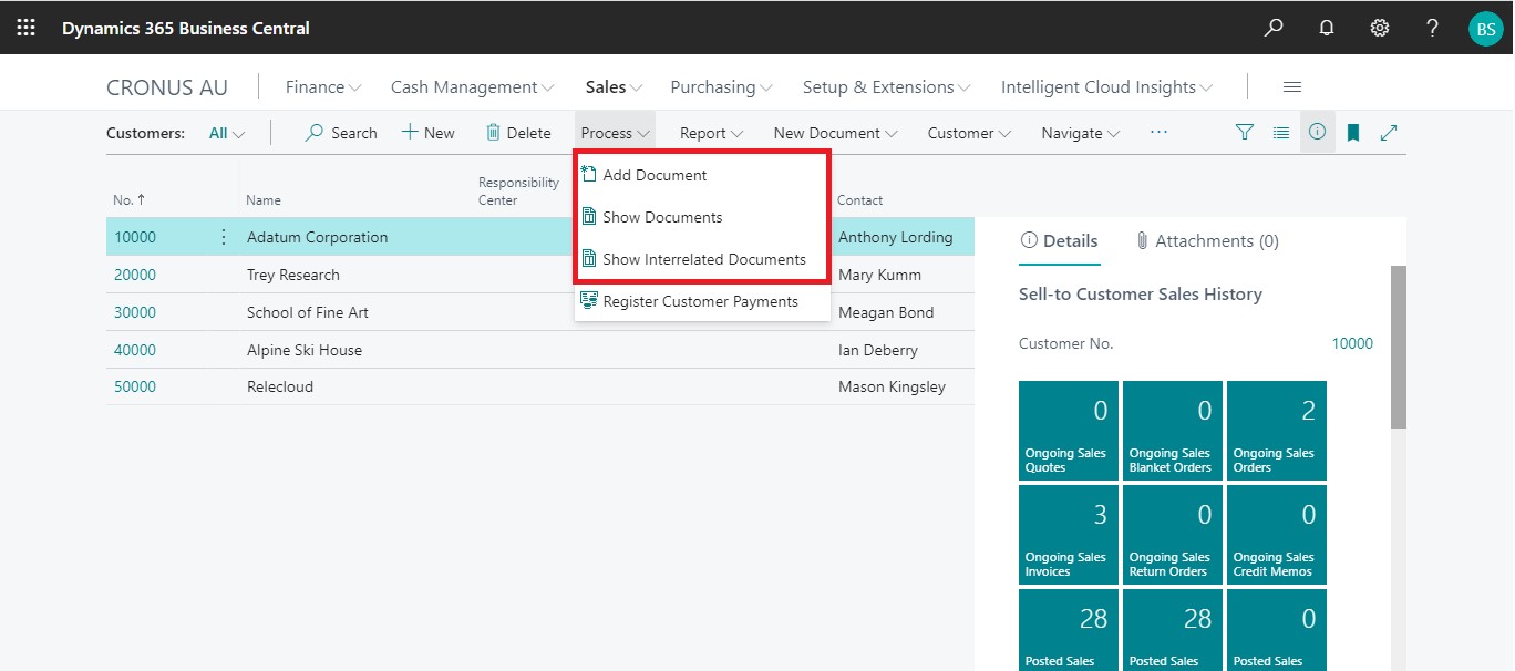 Follow the below steps to test the PaperSave functionality “Show Interrelated Documents” from Customer card: