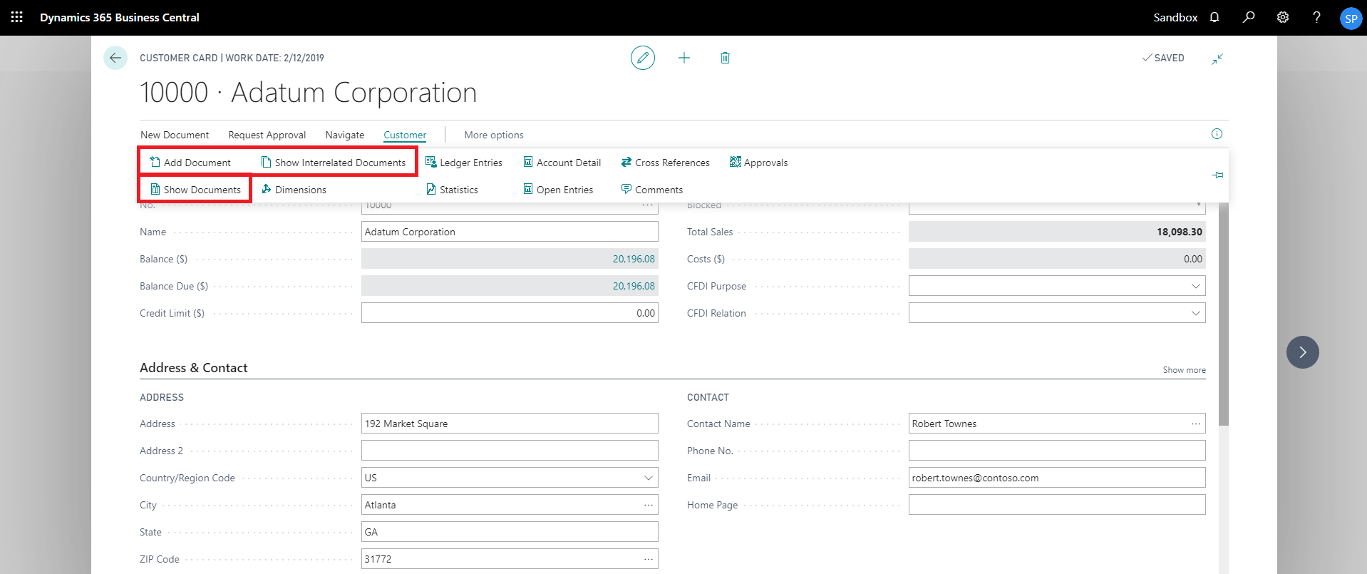 1. On the Customer tab of Customer Card, click on “Show Interrelated Documents”.