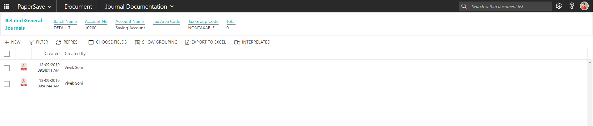 Follow the below steps to test the PaperSave functionality “Show Interrelated Documents” from General journals batch: