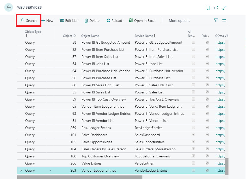 4. It shall load a list of all the Web Services in the Dynamics 365 Business Central.