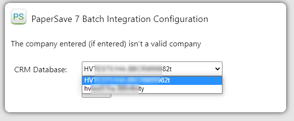 Tip: When you perform any PaperSave operation in Revenue batch and only one company is configured, then that single company name will automatically get mapped in the Company Name field of the batch integration dialog box. Now, in case you have multiple companies, a dialog box appears as shown below where you can select your desired company from the drop-down and save it, and then it is automatically mapped with the batch integration extension.