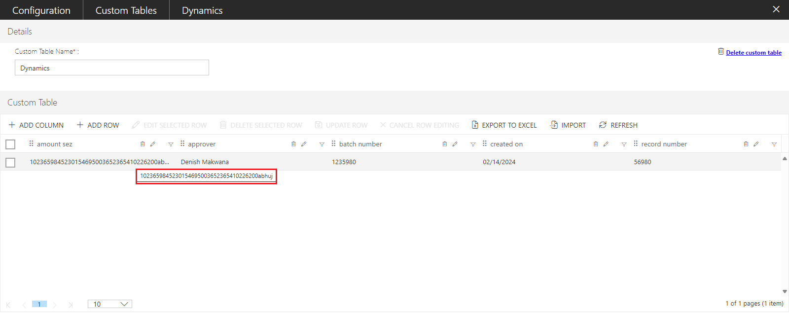 Note: The import option is enabled only, when at least a single column is defined in a Custom Table.