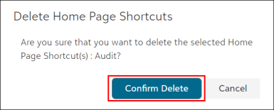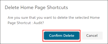 • Once you click on the Delete Home Page Shortcut option, a confirmation message will appear, as shown on the below screen.