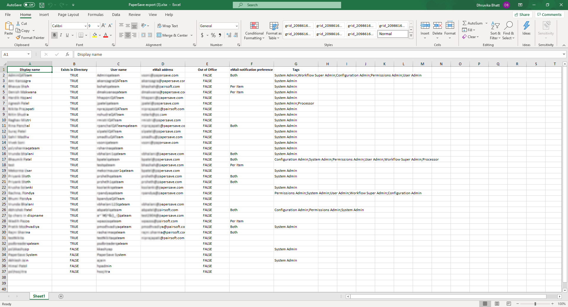- EXPORT TO EXCEL: You can export the complete or selected list of users from the list to Microsoft Excel sheet. The downloaded Excel file will appear as shown in the below screen.
