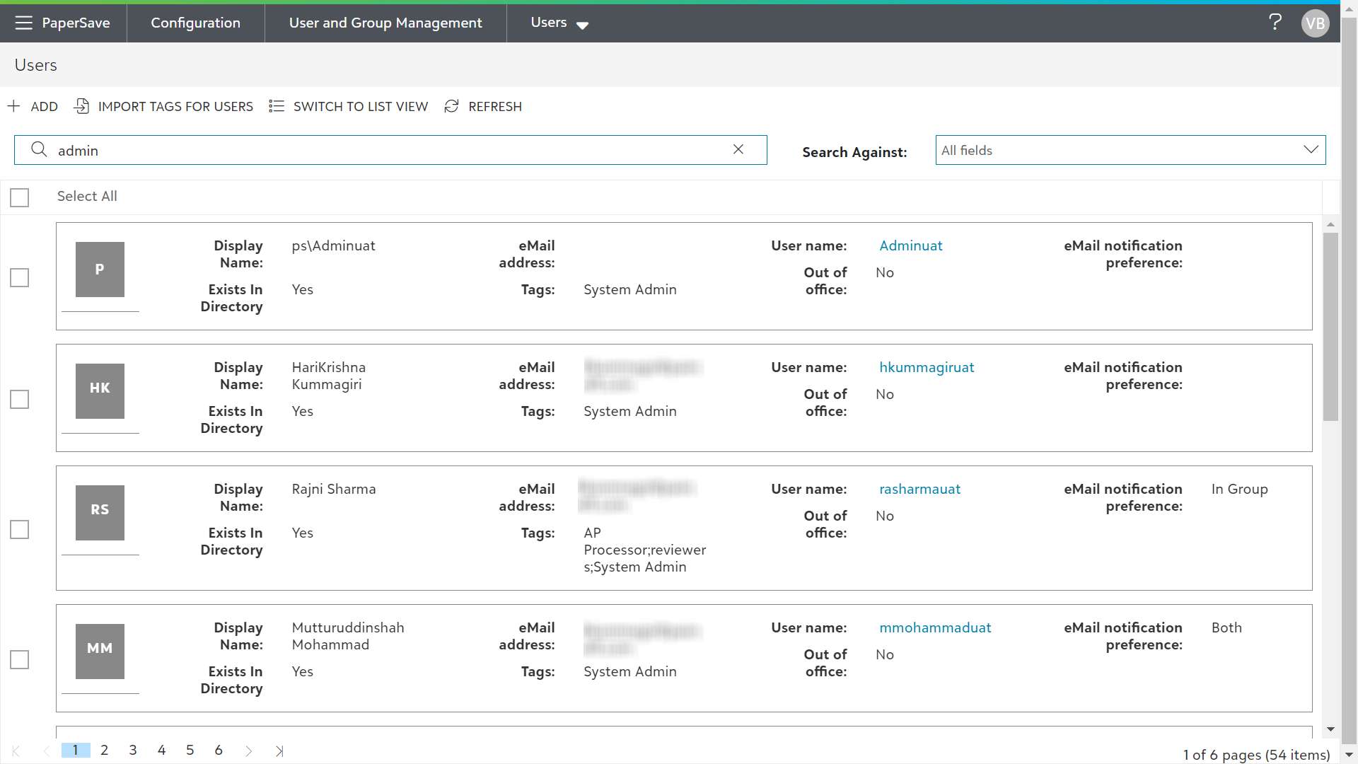 - SWITCH TO LIST VIEW: Click on this option to view the list of users in the List view, as shown in the below screen.
