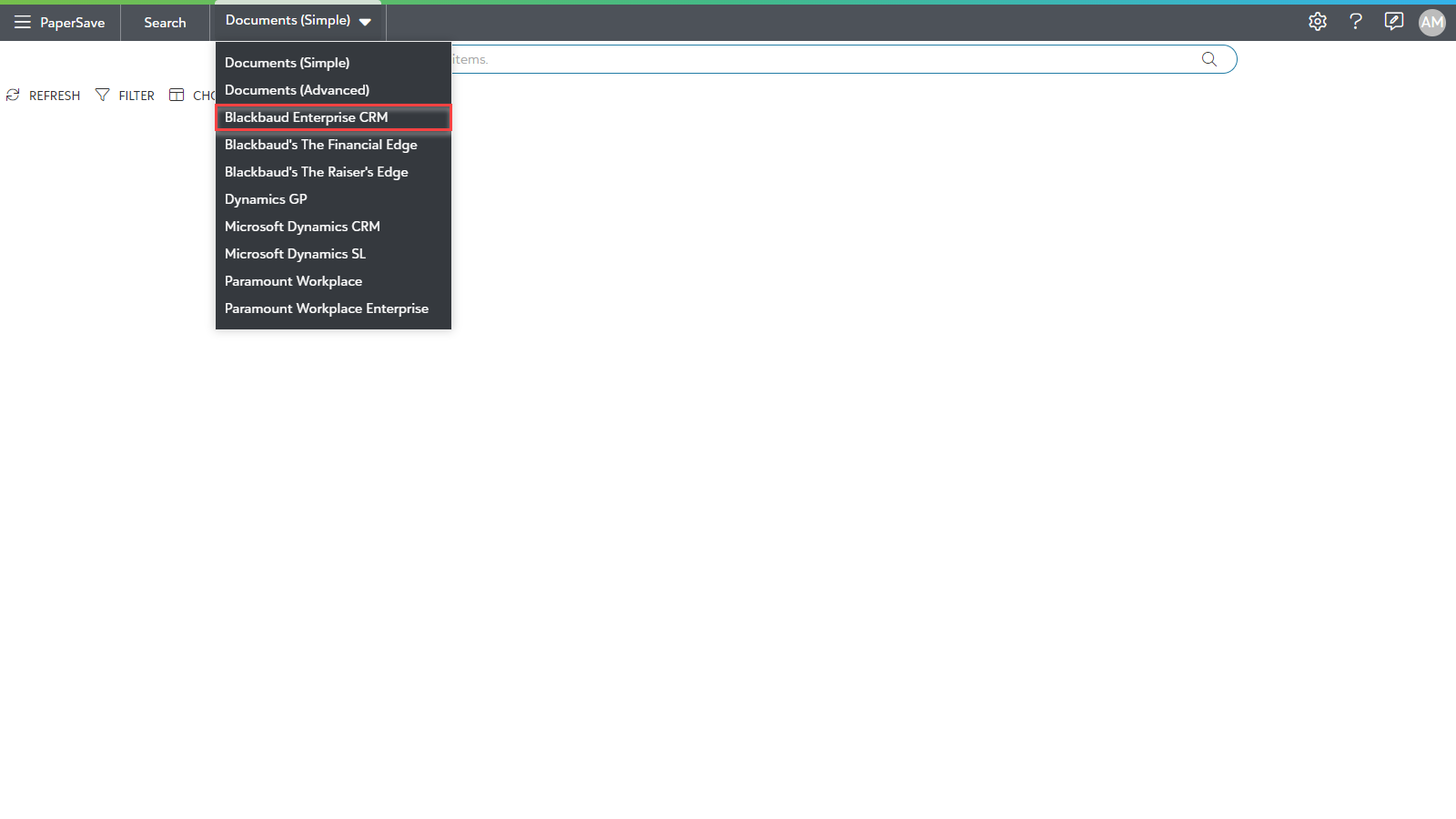 Search Area facilitates you to search for records of an Integrated application i.e. Blackbaud CRM for desired Instance, view the documents associated with one or more records, and add new documents to one or more Integrated App records using available File capture options.