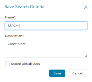 2) When you click on the “Save Search” option, a dialog box will pop-up where you need to enter a name and description for the saved query.
