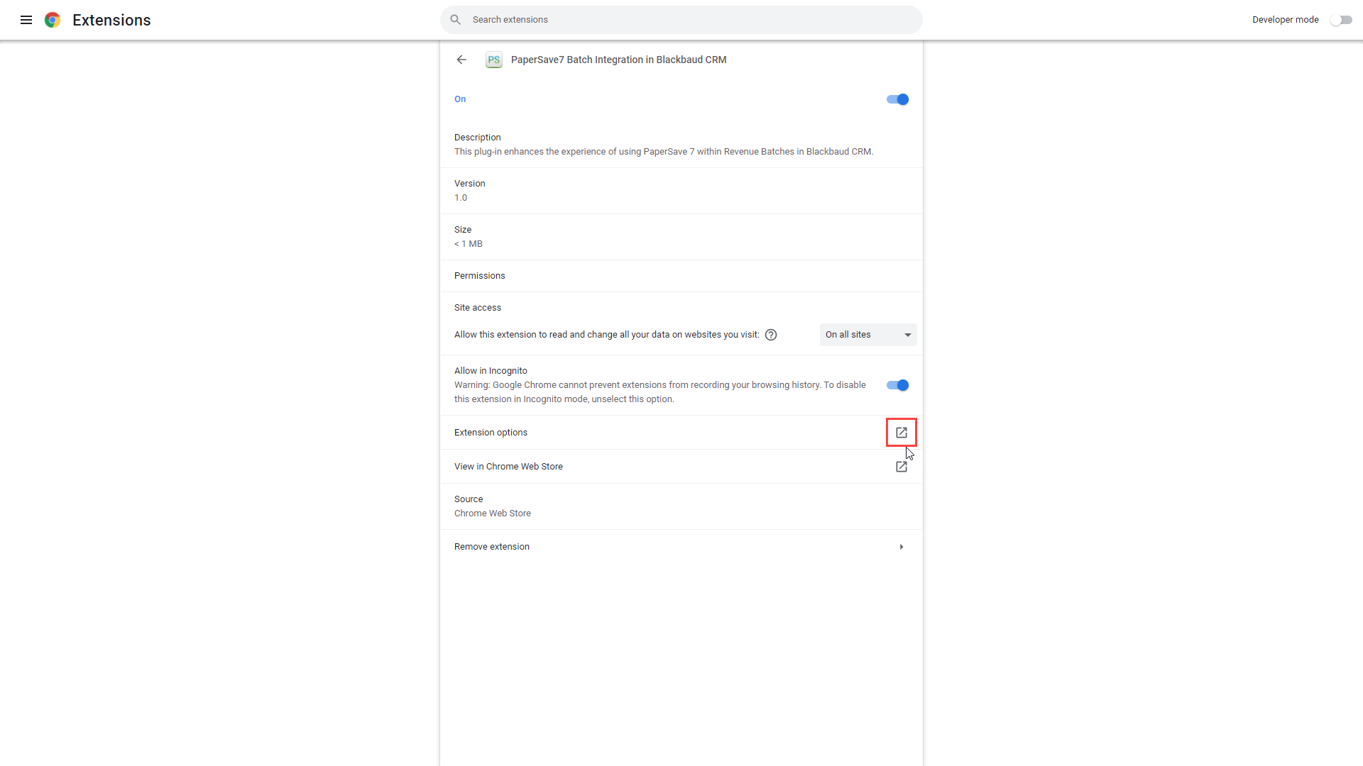 1) Open Chrome web store and search for "PaperSave 7 Batch integration" or Enter the URL given by PaperSave Team to install Chrome Plugin: