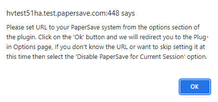 7) Now, when you open Blackbaud CRM in browser, it validates BBCRM URL and then checks for PaperSave Root URL and if you have not set PaperSave root URL yet, it gives prompt message as shown below for setting PaperSave Root URL