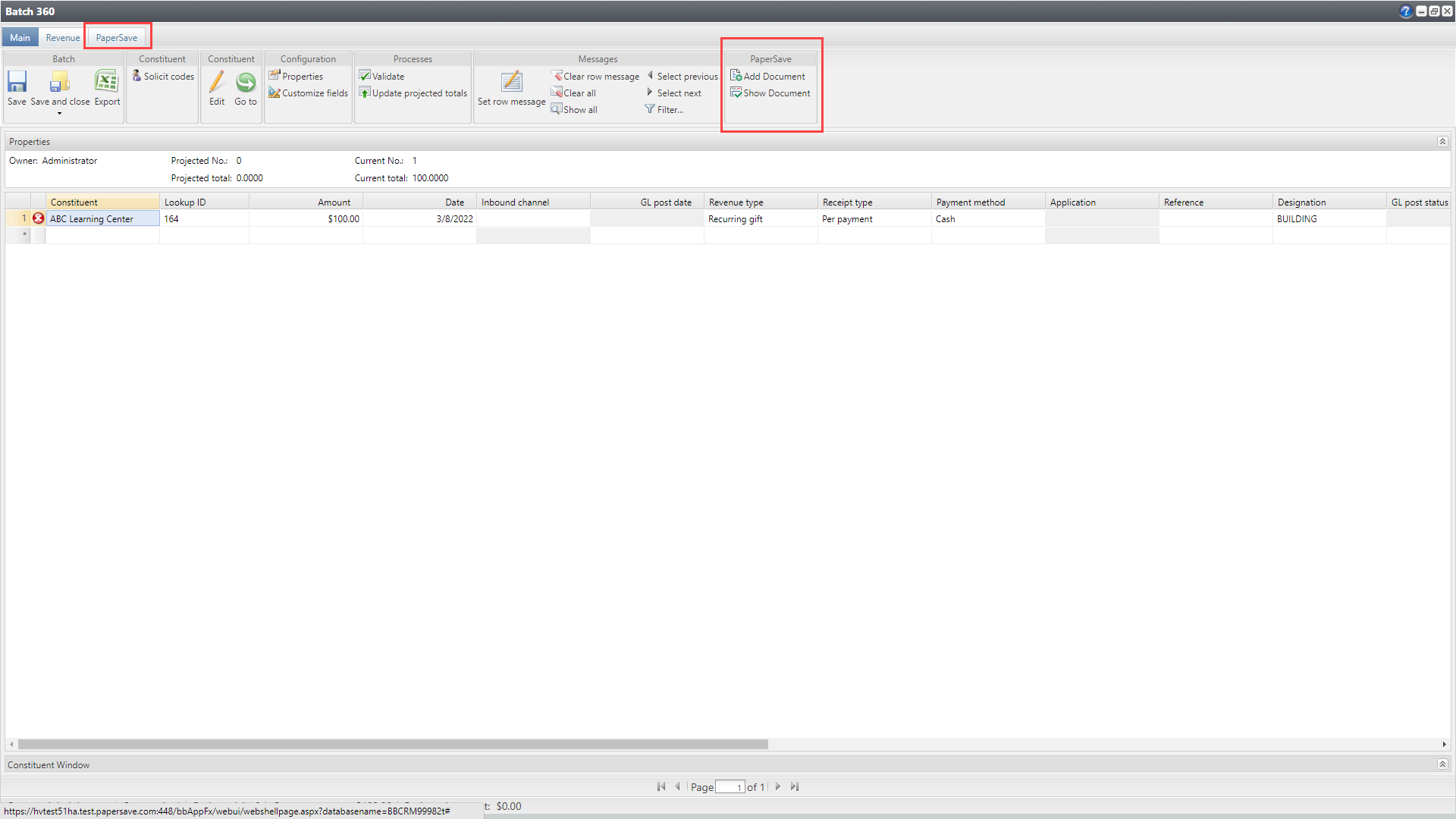 8) When PaperSave Batch Integration Plugin gets installed successfully, PaperSave options are displayed as the add-in buttons in Home tab of Revenue Batch and a separate PaperSave tab is also added to the batch as shown below.
