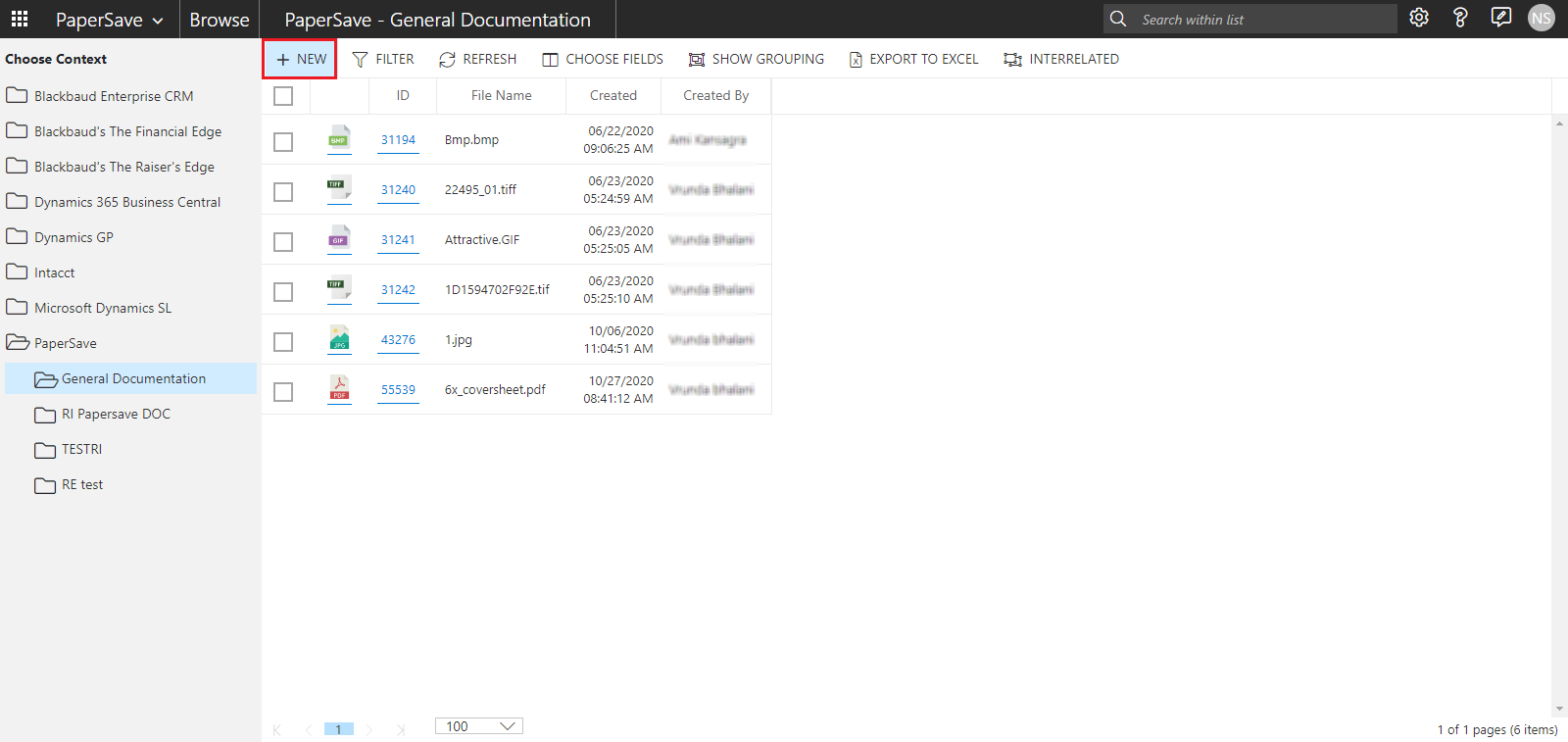 • Click on the option "+NEW" from the document list toolbar as shown below.