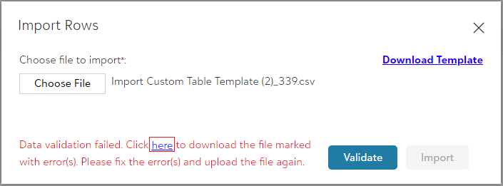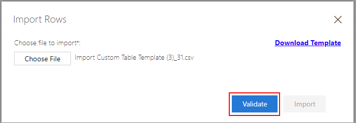 Note: When there is any row in the custom table and you click on the IMPORT button, then the confirmation notification appears on the screen, asking the user to either append new rows to existing ones in the table or override existing rows with the new rows.