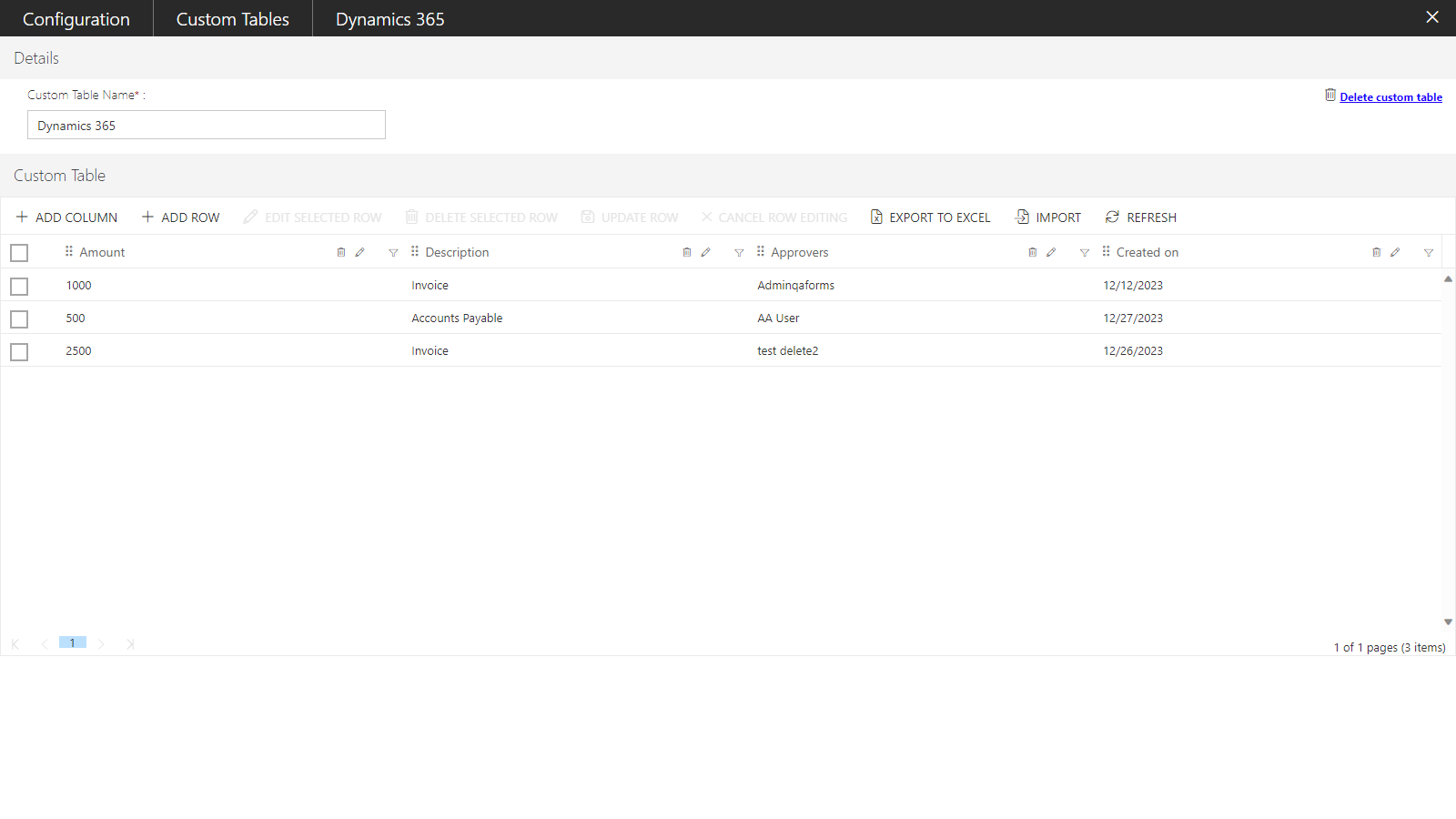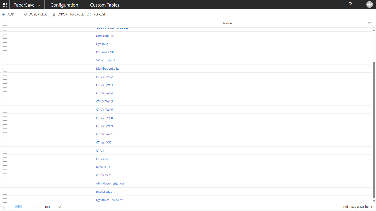 2) Now, the Custom Tables list view page opens, click on the desired custom table from the list as shown below.