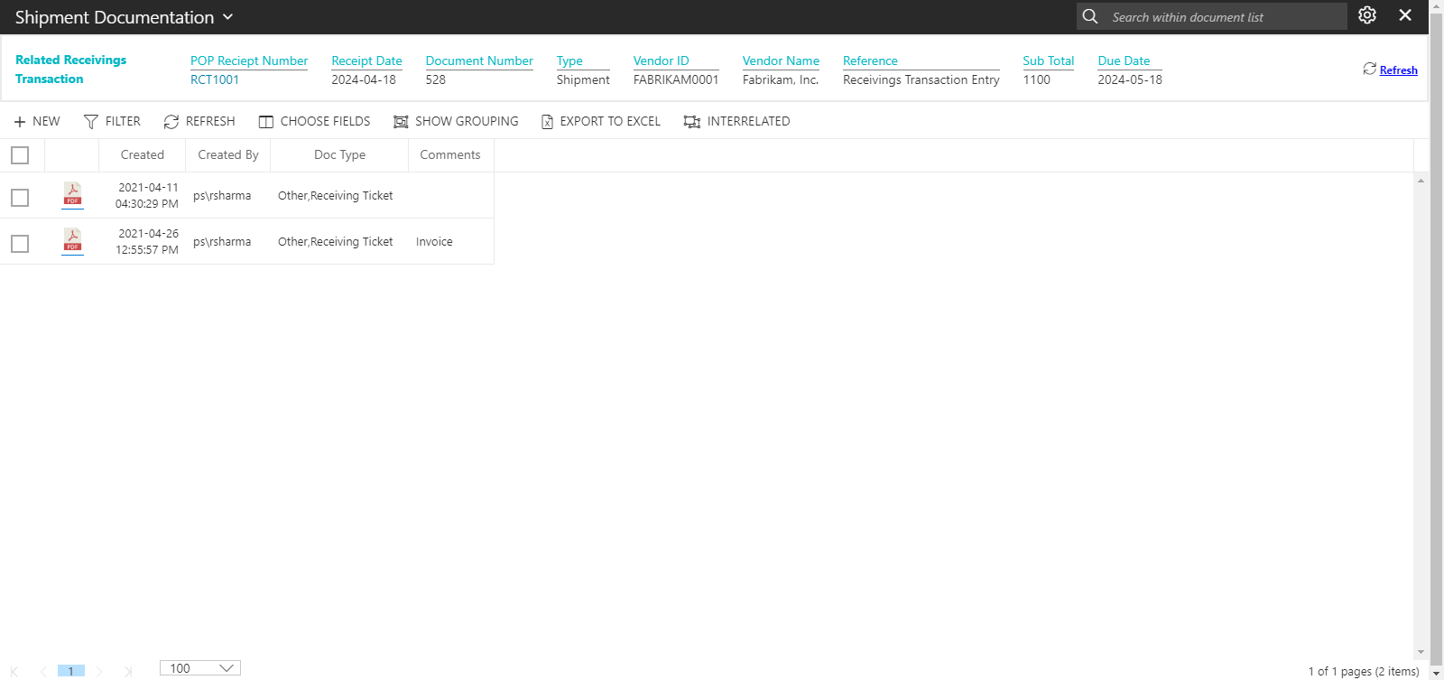 - Now, you can see the list of related documents for the selected records as shown in the below screen. Click on the document to open it in the item viewer.