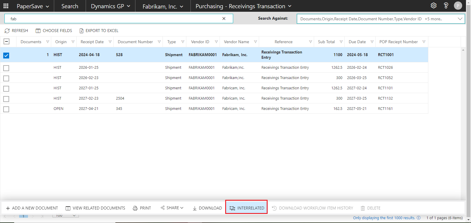 View Interrelated documents for Dynamics GP record
