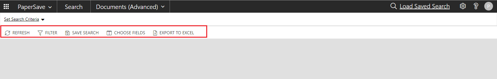 The Search Area offers a list toolbar for the Advanced Search as shown below: